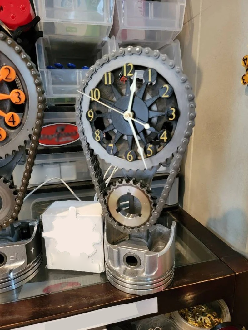 *This timing chain clock sits on any flat surface with the supplied base. This clock cannot hang on a wall.